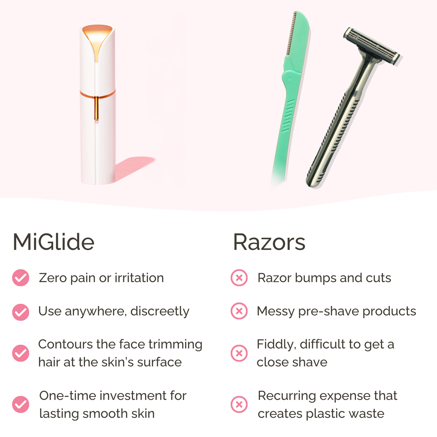 MiGlide uses revolutionary Hidden Blade Technology with rotating blades that spin underneath a protective guard.